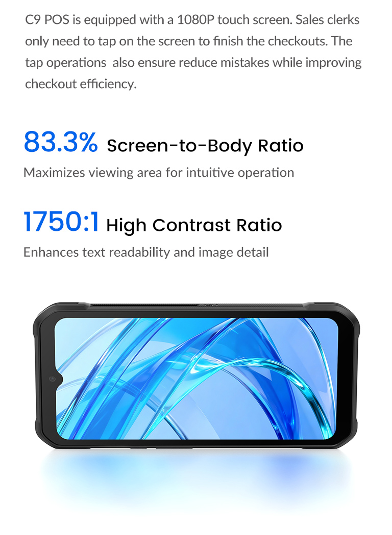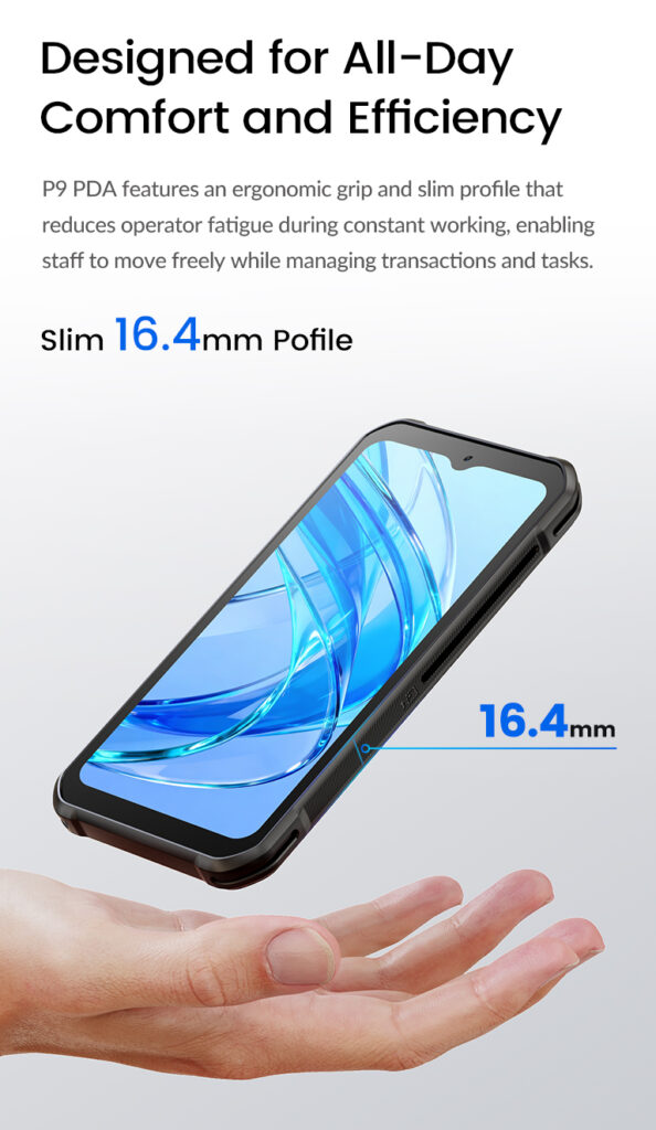 P9 PDA features an ergonomic grip and slim profile that reduces operator fatigue during constant working, enabling staff to move freely while managing transactions and tasks.